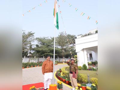 On X, the Chief Minister wrote, "On this auspicious Republic Day, I had the honour of unfurling the National Flag at my official residence on SPM Lane, reaffirming our solemn commitment to the sacred ideals of the Constitution and the eternal spirit of the Republic."