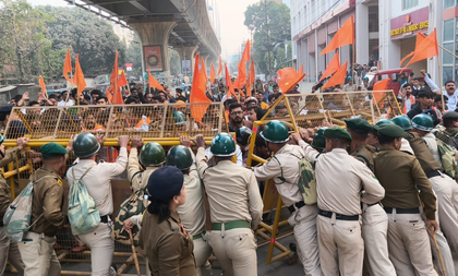 A brief scuffle took place between VHP and Bajrang Dal protesters and police personnel during the attempt to move forward, though the situation was later brought under control.