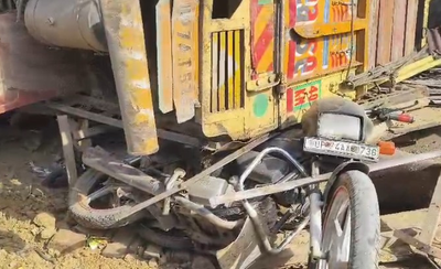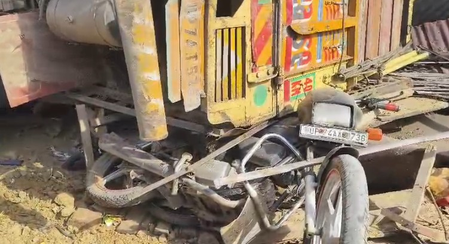 The accident took place in the Chhibramau area, where the truck created panic after losing control on the road. According to officials, the vehicle first rammed into a motorcycle and a scooter before ploughing into a line of shops and overturning.