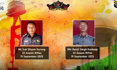 Assam Rifles Director General Lt Gen Vikas Lakhera condoled the death. In a post on the Assam Rifles X handle, he said: “Lt Gen Vikas Lakhera, AVSM, SM, Director General Assam Rifles and All Ranks of Assam Rifles pay solemn tribute to Nb Sub Shyam Gurung and Rfn Ranjit Singh Kashyap who made the supreme sacrifice in the line of duty in Manipur today and offer deep condolences to the families of our Brave Soldiers.”