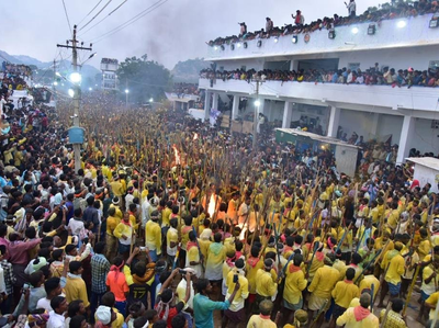 Thousands of people from various parts of Kurnool and surrounding districts and neighbouring states like Telangana and Karnataka gather at the village to watch the traditional fight.