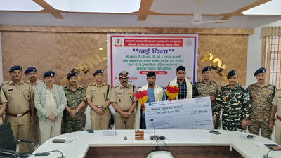 Police officials welcomed the duo with bouquets and handed them symbolic cheques under the Jharkhand government’s Naxal surrender and rehabilitation policy. The family members of both ultras were also present on the occasion.