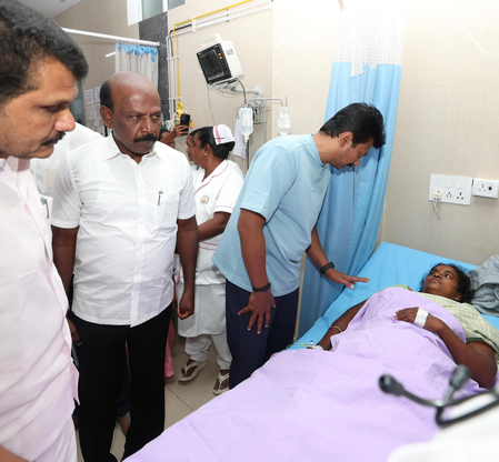 Speaking to reporters after visiting the Government Medical College Hospital in Karur, Udhayanidhi said Chief Minister M.K. Stalin rushed to the district as soon as the tragedy was reported.