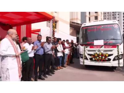 Ahmedabad (Gujarat) [India], February 17 : Union Home Minister Amit Shah flagged off a Mobile Blood Collection Van at the Sola Civil Hospital on Tuesday.