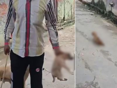 The incidences of animal cruelty are increasing day by day, leaving concern of about safety of animals. A disturbing incident from Uttar Prades's Amroha where man was caught on camera brutally beating puppy with stick in front of its mother. In a heartbreak video it can be seen that man is grabbing puppy by its neck, hitting him repeatedly and then throwing it on the road as the mother dog helplessly watching.