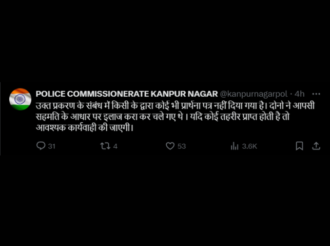 Kanpur police reported that no formal complaint has been filed, and the matter appears to have been resolved between the two parties involved. However, authorities have pledged to take action if a complaint is lodged.
