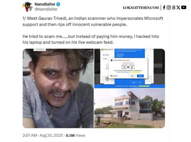 An Indian national, identified as Gaurav Trivedi from Raebareli in Uttar Pradesh, is facing accusations of running a fraudulent Microsoft tech support racket from his residence. The matter came to light after an X user hacked into Trivedi’s own system, recorded his shocked expression through his webcam, and posted the clip online—where it quickly spread across social media. On X, the user named NanoBaiter, who describes himself as someone who “tracks down and identifies scammers,” alleged that Trivedi was behind a typical “Microsoft support scam.” Such scams typically begin with a fake pop-up that freezes a user’s computer, plays loud warning sounds, and instructs them to call a fake helpline. Once a victim dials the number, scammers trick them into granting remote access through software like AnyDesk or TeamViewer, which is then misused to steal data or money.