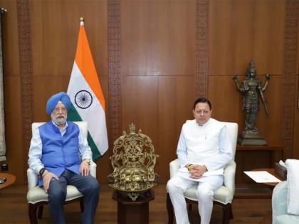 New Delhi [India], April 27 : Uttarakhand Chief Minister Pushkar Singh Dhami met Union Minister for Petroleum and Natural Gas Hardeep Singh Puri at Kartavya Bhavan in New Delhi and held detailed discussions on several important issues, keeping in view Uttarakhand's geographical conditions and its vulnerability to natural disasters.
