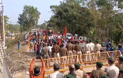 The protesters demanded a total halt to border trade and export-related activities with Bangladesh.