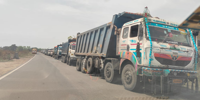 The protesters are demanding compensation of Rs 20 lakh for the victim’s family, provision of an alternative route, enforcement of a no-entry rule for heavy vehicles on the main road, and a strict curb on overloading.