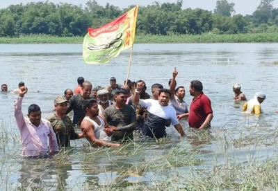Police personnel rushed to the spot and pulled out several villagers who were wading into the water. The dramatic protest created high tension in the area, forcing the administration to step up security around the dam.