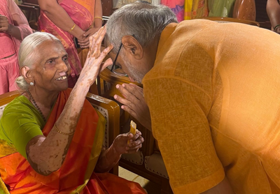 Radhakrishnan, who has been touring the region as part of a series of public engagements and community outreach programmes, took a brief pause from his busy schedule to visit his family home. The visit, marked by warmth and simplicity, was highlighted by his touching gesture of seeking his mother’s blessings - a tradition deeply rooted in Indian culture.