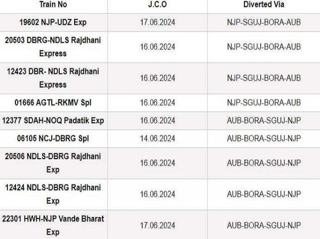 In view of tragic collision of 13174 Kanchanjunga express in between Rangapani - Chattar Hat of Katihar division, the following trains will be cancelled/diverted as indicated below- pic.twitter.com/Miv5JUiKBB