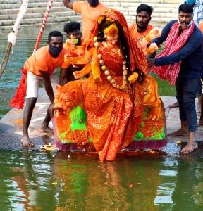 Although immersion started from Thursday on the occasion of Dussehra, the rush for immersion was much less yesterday, with only puja organisers from housing complexes, individual residences, and extremely conservative community Puja organisers going for the ritual on Thursday.