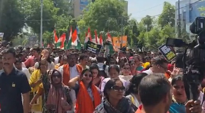 Highlighting participation in the march, State Women Commission Vice-President Charu Choudhary said, “You have seen that even in this scorching heat, the number of women was in thousands. This shows that women will no longer remain silent; they will fight for their rights. Since our Prime Minister took over the leadership of the country, he has run countless schemes to empower women... When it was time to strengthen them politically, he talked about giving 33 per cent reservation under the Nari Shakti Vandan Adhiniyam.”