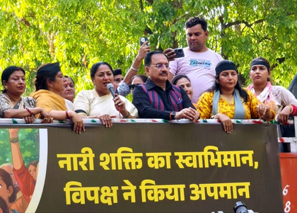 New Delhi, April 18 Joined by BJP MP Hema Malini, Delhi Chief Minister Rekha Gupta led a women’s protest march to the residence of Leader of Opposition in Lok Sabha Rahul Gandhi and burnt his effigy on Saturday for failing the 'Nari Shakti Vandan Adhiniyam' in Lok Sabha a day earlier.