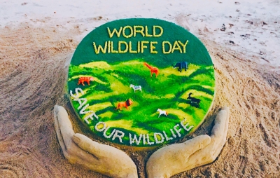 To mark the occasion of World Wildlife Day, India's sand artist Sudarsan Pattnaik created sand art at Odisha's Puri beach to show his support.
