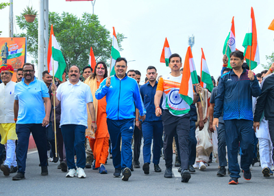 Deputy Chief Minister Diya Kumari, Sports and Youth Affairs Minister Colonel Rajyavardhan Rathore, various public representatives, athletes, police and RAC personnel, NCC and NSS cadets, scout guides, and university and college students joined the march.