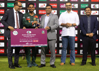 Chasing Bangladesh’s challenging 290/5 built on a run-a-ball 107 by Tanzid Hasan, Pakistan lost 5 wickets with only 82 runs on the board as the hosts' pacers came up with a superb performance. Their top batters, Sahibzada Farhan and Maaz Sadaqat, who scored a century in the second ODI, both fell cheaply, scoring just six runs each, while former skipper Mohammad Rizwan was out for 4, as Taksin Ahmad and Nahid Rana struck repeatedly. Pakistan were eventually all out for 279 in 50 overs, losing the match despite a fighting century by Salman Agha (106).