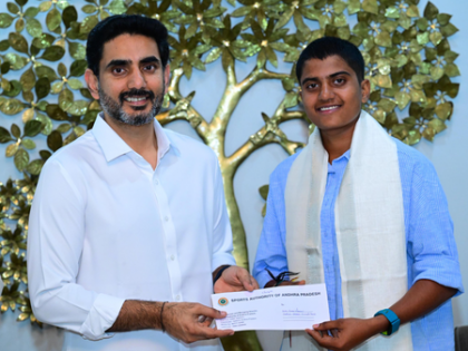 Education and IT Minister Nara Lokesh personally met Shree Charani at his Undavalli residence and presented her with the cheque on behalf of the coalition government.