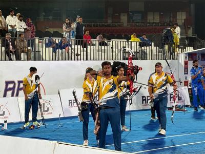 New Delhi [India], October 6 : The fifth day of the Archery Premier League (APL) saw the Rajputana Royals registering their fifth straight victory while the Kakatiya Knights woke up from their slumber to register first victory amid rainy and windy conditions here at New Delhi's Yamuna Sports Complex on Monday, as school children in the stands cheered the best archers in the world across three exciting battles.
