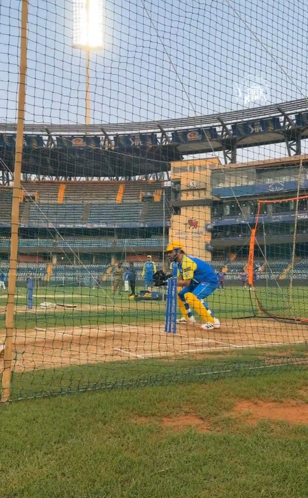 After being sidelined for six matches due to a calf injury, Dhoni spent nearly an hour in the nets, actively engaging in batting and wicketkeeping drills. He looked confident during the session, moving freely and showing no signs of discomfort as he faced pacers like Matt Henry and Jamie Overton.