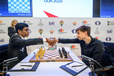 In other matches, two-time World Cup winner GM Levon Aronian defeated GM Radoslaw Wojtaszek in 37 moves with white, while GM Jose Eduardo Martinez Alcantara outplayed GM Alexey Sarana in 39 moves with black pieces.