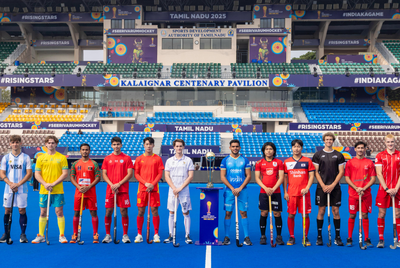 Meanwhile, captains of the other 12 nations, Germany’s Ben Hasbach, South Africa’s Dan Neuhoff, Grant Simpson of Canada, Louis Rowe of Ireland, Spain skipper Guiu Corominas, Basel Abdelmonem of Egypt, Lucas Balthazar of Belgium, John-Paul Britz of Namibia, Casper van der Veen of the Netherlands, England’s Max Anderson, Muhammad Danish Aiman Khairul Anuar of Malaysia, and Mateusz Nyckowiak of Austria, gathered in Madurai for the photoshoot at the newly inaugurated Madurai International Hockey Stadium.
