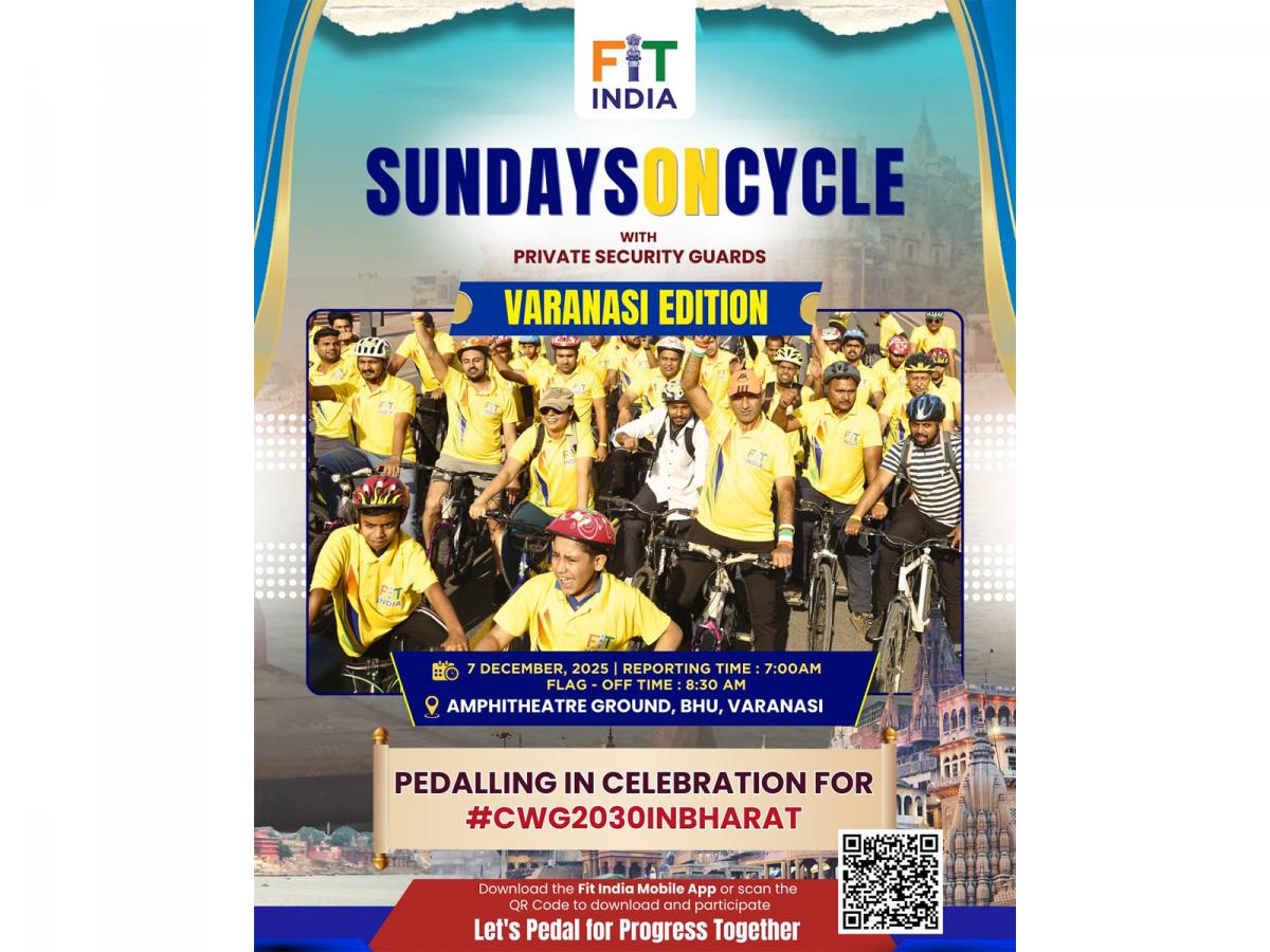 Varanasi (Uttar Pradesh) December 6 : The timeless city of Kashi, known for its spiritual heritage and vibrant culture, will host a special edition of Fit India Sundays on Cycle tomorrow (December 7).