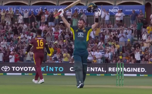 Maxwell slammed a 50-ball century to propel Australia to a mammoth 241/4 against the West Indies. He came to the crease when Australia were in trouble at 64/3 in the seventh over and from there, he blasted eight sixes and 12 fours in an incredible knock of 120 not out from 55 balls.