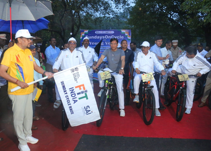 New Delhi, Jan 25 The 58th edition of the Sundays on Cycle was flagged off in Karaikal in Puducherry by Union Minister of Youth Affairs and Sports Dr Mansukh Mandaviya, who met and felicitated first-time voters and cycled with them to celebrate the 58th edition of Fit India Sundays on Cycle which was dedicated to National Voter's Day.