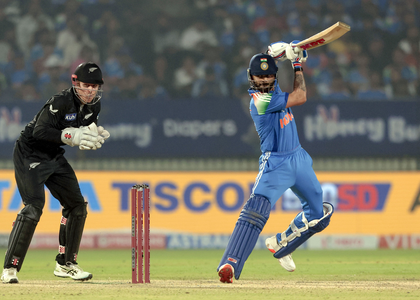 Although Kyle Jamieson took some late wickets, India won the match with an over remaining and hold a 1-0 lead in the 3-match series. Kohli played an amazing inning that set up the chase for victory and also allowed him to reach some big personal milestones. First, he reached the milestone of 28,000 International runs with a four in the 13th over off Adithya Ashok; he is now the fastest player to reach this milestone (624 innings) and did it 20 innings quicker than Sachin Tendulkar did.