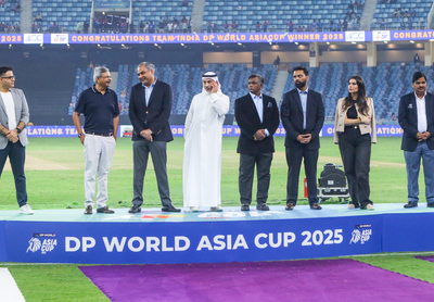 While the match ended around 10.30 pm Dubai time, in a thrilling final-over finish, the wait for the presentation went on until close to midnight.Before the ceremony Indian team management had enquired who would be presenting the silverware.