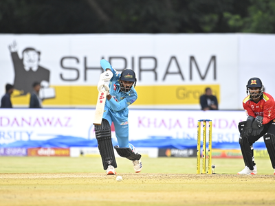 Smaran extended his purple patch, carting Vidwath Kaverappa for a six and two fours in the 12th over. He added a six apiece in the following three overs on his way to a 28-ball fifty.