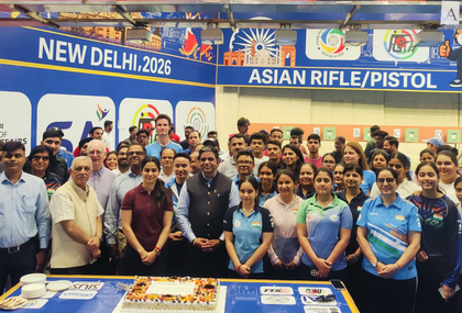 The celebrations began here at the hallowed Dr. Karni Singh Shooting Range (DKSSR) Finals Hall, with a ceremonial cake-cutting in the presence of Pawankumar Singh, Secretary General, NRAI, Rajiv Bhatia, Secretary, NRAI, Jitu Rai, Khel Ratna Awardee, Mansher Singh, Arjuna Awardee and Chief Shotgun Coach of Team India and double Olympic medalist Manu Bhaker, besides shooters, coaches and support staff of the national shooting squad and the National Centre of Excellence (NCOE) for shooting sports.
