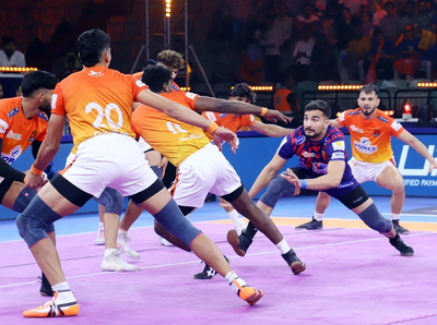 However, Puneri Paltan responded strongly with Aditya Shinde and Pankaj Mohite’s raids. Their defenders set the tone for a fightback with Abinesh Nadarajan and Gurdeep, and Vishal Bhardwaj eventually helped them get their revenge with an all out of their own, tying the game at 16-16.