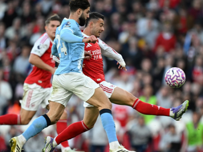 It was the first goal Arsenal had conceded from open play all season. City’s next chance came when Mikel Merino was tackled just outside his own area, the ball was moved along to Reijnders, but his shot trickled through to David Raya.