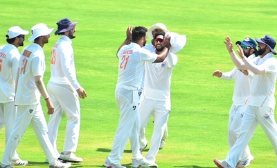 Despite losing partners, Mayank kept attacking loose deliveries and found the boundary regularly. After surviving a few dropped chances, he was finally dismissed in the 91st over when Auqib trapped him with a good-length ball. Mayank scored 160 off 266 balls, hitting 21 fours.
