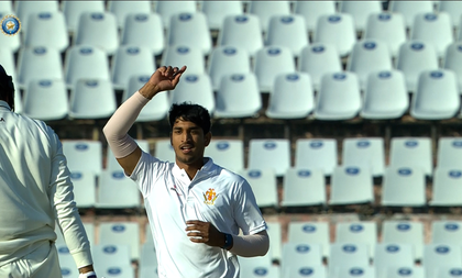 At Holkar Stadium in Indore, Madhya Pradesh eked out a slender eight-run first-innings lead against Maharashtra. Left-arm spinner Kumar Kartikeya Singh returned with figures of 6-33 to bowl out Maharashtra for 179 after MP were bowled out for 187. In their second innings, Shubham Sharma (54) and Venkatesh Iyer (52) struck fifties as MP reached 166/4 at stumps, with their lead standing at 174 runs.