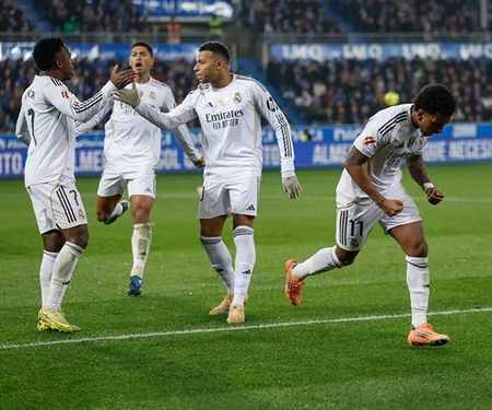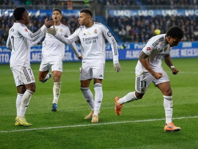 Madrid, Dec 15 Kylian Mbappe and Rodrygo scored to give Real Madrid a 2-1 win away to Alaves, trimming the gap to La Liga leader FC Barcelona to four points.