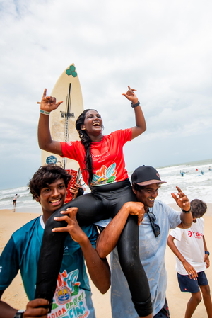 The highlight event of the day was the men’s open surfing final, another all Tamil Nadu affair, featuring the top-seeded surfers from across the country. Ajeesh Ali, who represented India at the 2023 ISA World Surfing Games in El Salvador, walked away with the championship title with the highest score of the day (14.70). The intense action and thrilling competition in the category captivated the audience.