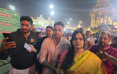 Tirupati, Dec 30 India’s T20I captain Suryakumar Yadav and his wife Devisha Shetty paid a visit to the Sri Venkateswara Swamy Temple, Tirumala, in Andhra Pradesh and offered their prayers on the occasion of Vaikuntha Ekadashi.
