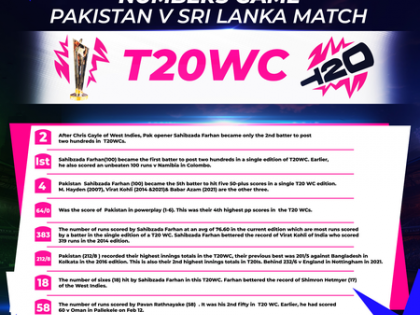 18 - The number of sixes (18) hit by Sahibzada Farhan in this T20 WC. Farhan bettered the record of Shimron Hetmyer (17) of the West Indies.