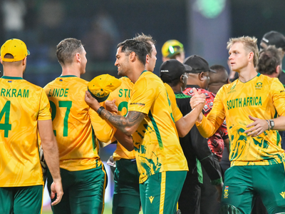 South Africa’s chase began with a huge jolt when Quinton de Kock was undone by a slower ball from Raza which found grip, and had him chopping into the gloves of Tadiwanashe Marumani. Raza struck again in his second over when his carrom ball kept low and sneaked through Aiden Markram’s bat to castle him for just four.
