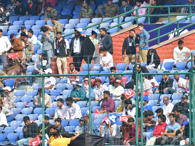 Despite the atmosphere being sedate in the morning, as more security and police officials were spotted outside the entry gates, the atmosphere inside the ground was lively, with fans treated to popular English and Hindi songs.