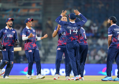 Despite losing his opening partner, Louren kept attacking the USA bowlers as he forged a 45-run partnership with Loftie-Eaton, who eventually got out after scoring 28 runs off 17 balls, hitting four boundaries.