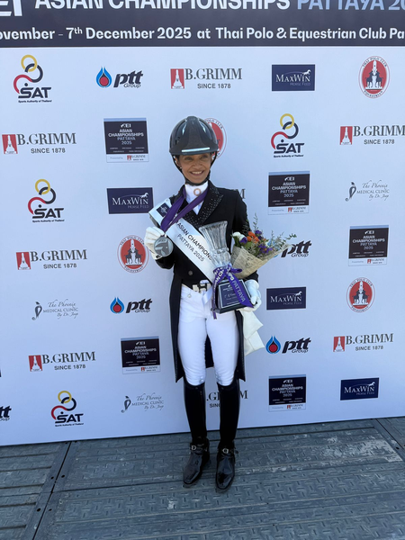 In the Dressage Freestyle to Music Individual Championship in the event held in Pattaya, Thailand, Shruti Vora delivered a strong and composed performance to secure the Silver Medal, registering an impressive score of 73.800% aboard Magnanimous. The event was topped by Sarah R. of China, riding Geniaal, who claimed gold with a score of 79.180, while Pakjira Thongpakdi of Thailand, on Samira O, finished with the bronze, scoring 72.505%.