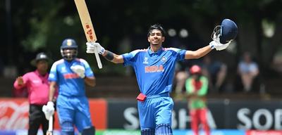Malhotra and Abhigyan Kundu then settled into a fine batting rhythm to steer India clear of any potential danger. The former fired India's first century at the tournament, while Kundu's 61 off 62 deliveries set India on the course for a big score. Khilan A. Patel's 12-ball 30 added to the late fireworks as India finished with 352/8 from their 50 overs.