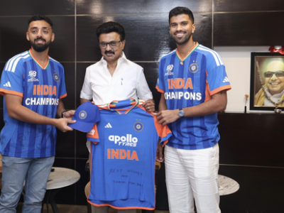The spin duo, who hail from the state, also presented a signed jersey and a cap to the CM. Tamil Nadu's deputy chief minister, Udhayanidhi Stalin, was also present on the occasion.