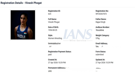 However, the WFI chief refuted such claims and shared a copy of Vinesh's registration exclusively with IANS.